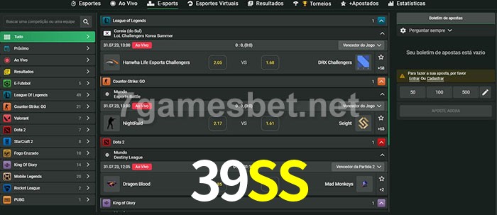 O 39SS oferece uma grande seleção de opções de apostas em e-sports com probabilidades competitivas